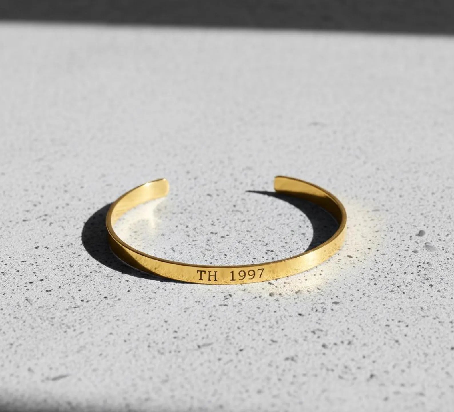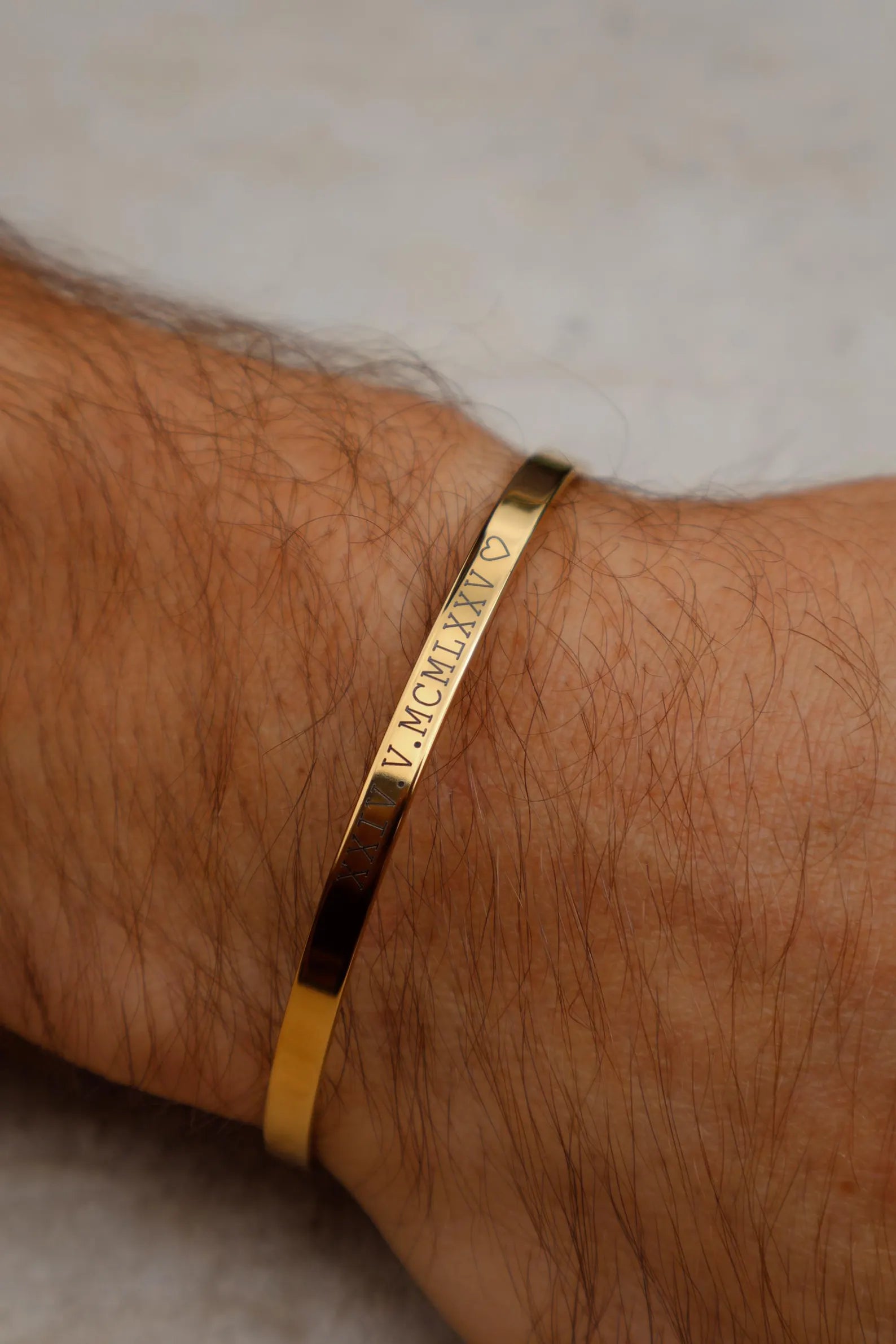Celebrate your special moments with this elegant customized stainless steel bracelet designed for both men and women. Engraved with your meaningful Roman date, name, or message, this bracelet turns a simple accessory into a timeless memory. Its sleek gold finish and minimalist design make it perfect for everyday wear or as a thoughtful gift for someone special.