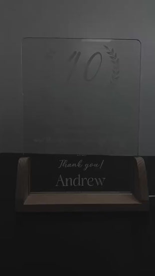 Custom LED Retirement Recognition Plaque | Personalized Edge-Lit Acrylic Award with Wooden Base