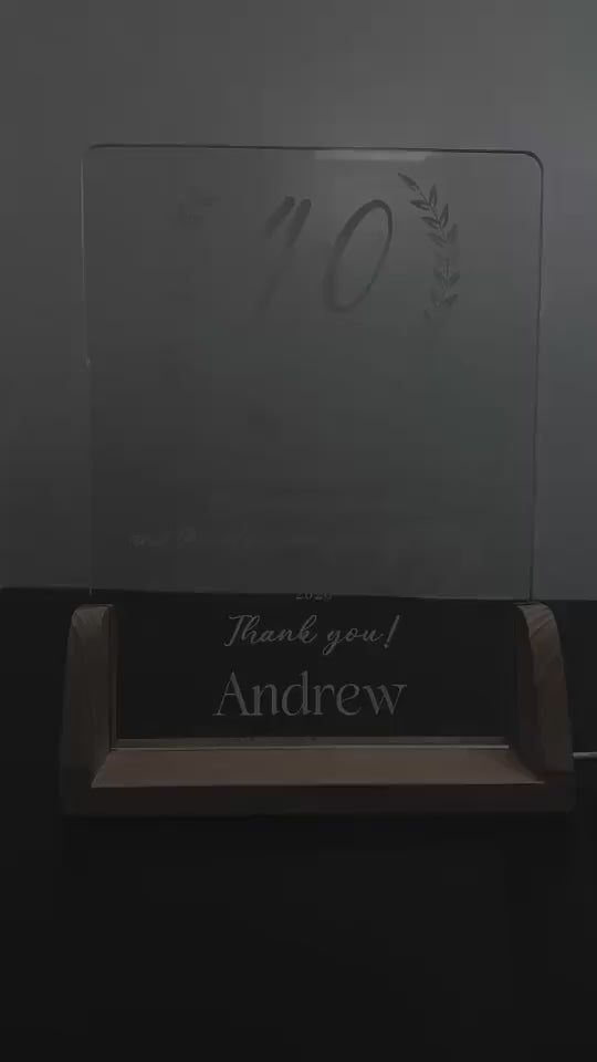 Honor a lifetime of hard work and professional impact with this premium edge-lit acrylic plaque. Featuring a clean, vertical design and a sleek, natural wood base, this award combines a warm, inviting glow with a professional aesthetic—making it the perfect centerpiece for a home office, study, or mantel.